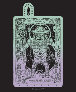 A super soft, black Gildan tee featuring a brand new design from the one and only Gary Panter! Gorgeous two-tone silk screen printed by hand, right here in Seattle! Sizes range from S to 3XL.