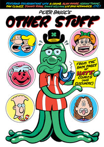 During the 1990s and 2000s, Peter Bagge worked mostly on his "Buddy Bradley" stories in Hate and a series of standalone graphic novels (Apocalypse Nerd), but in between these major projects this ever-energetic cartoonist also cranked out dozens of shorter stories, which are now finally being collected in this riotously anarchic book. Peter Bagge's Other Stuff includes a few lesser-known Bagge characters, including the wacky modern party girl "Lovey" and the aging bobo "Shut-Ins" — not to mention the self-explanatory "Rock 'N' Roll Dad" starring Murry Wilson and the Beach Boys. But many of the strips are one-off gags or short stories, often with a contemporary satirical slant, including on-site reportage like "So Much Comedy, So Little Time" (from a comedy festival) and more. Also: Dick Cheney, The Matrix, and Alien! Other Stuff also includes a series of Bagge=written stories drawn by other cartoonists, including "Life in these United States" with Daniel Clowes, "Shamrock Squid" with Adrian Tomine, and the one-two parody punch of "Caffy" (with art by R. Crumb) and "Dildobert" (with art by Prison Pit's Johnny Ryan)... plus a highlight of the book, the hilarious, literate and intricate exposé of "Kool-Aid Man" written by Alan Moore and drawn by Bagge. (Other collaborators include the Hernandez Brothers and Danny Hellman.) Bagge is one of the funniest cartoonists of the century (20th or 21st), and this collection shows him at his most free-wheeling and craziest... 50 times over.